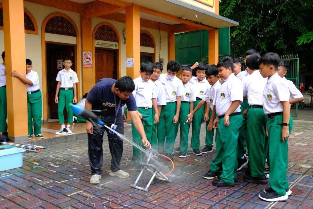 Eksperimen ini mengenalkan konsep tekanan udara dan reaksi pembakaran, dikemas dengan pendekatan yang aman dan sesuai usia siswa. - Roket Air